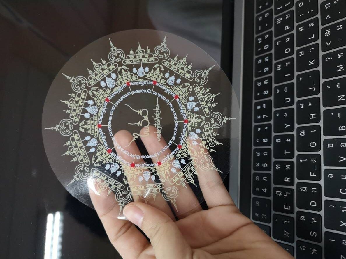 เราทุกคนคงเคยเห็นงานในลักษณะนี้มาก่อนค่ะ ทว่า เรียกไม่ถูกว่าเป็นสติ๊กเกอร์ประเภทไหน ? ซึ่งในหัวข้อนี้ จะขอทำหน้าที่อธิบายเพิ่มเติมไปว่า สติ๊กเกอร์ใสแบบรองขาว ลักษณะเป็นสติ๊กเกอร์ที่เติมน้ำหมึกสีขาวลงไปก่อน และเมื่อไหร่ ที่มีการสั่งผลิตลวดลาย ก็สามารถนำสีอื่น ๆ พิมพ์ทับได้เลยค่ะ ซึ่งในส่วนของสติ๊กเกอร์ชนิดนี้ มีเนื้อเป็นพีวีซี ดังนั้น ถึงสามารถนำมาใช้งานได้ค่อนข้างครอบจักรวาลไม่แพ้งานพีวีซีเลยนะคะ