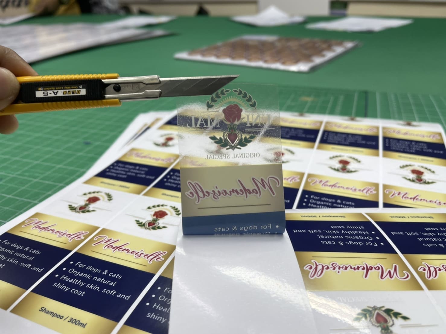มีผลต่อการทำสินค้าให้ดูพรีเมี่ยม ไม่ว่าจะเป็นรูปทรงงานไดคัท รูปทรงเรขาคณิตอย่าง พิมพ์หมึกขาวบนสติ๊กเกอร์ใส วงกลม เมื่อนำมาตัดให้เพียงพอกับพื้นที่บรรจุภัณฑ์ เราก็จะได้สินค้าพรีเมียมให้กับเราอีก 1 ชิ้นค่ะ