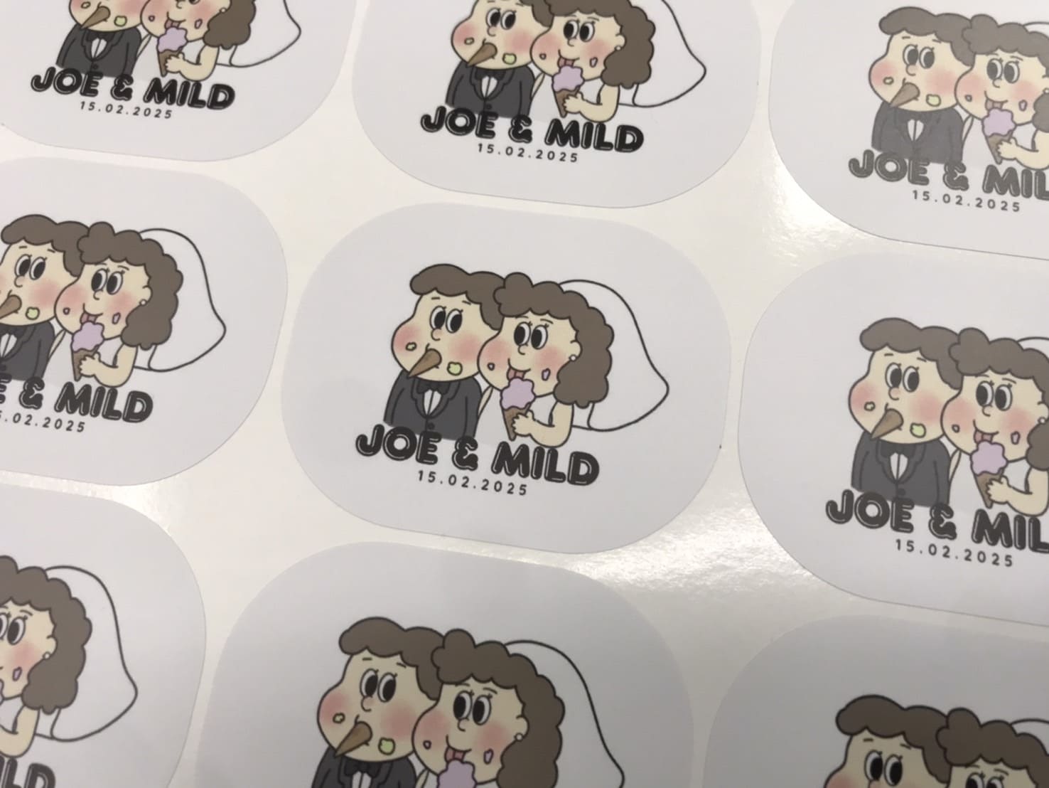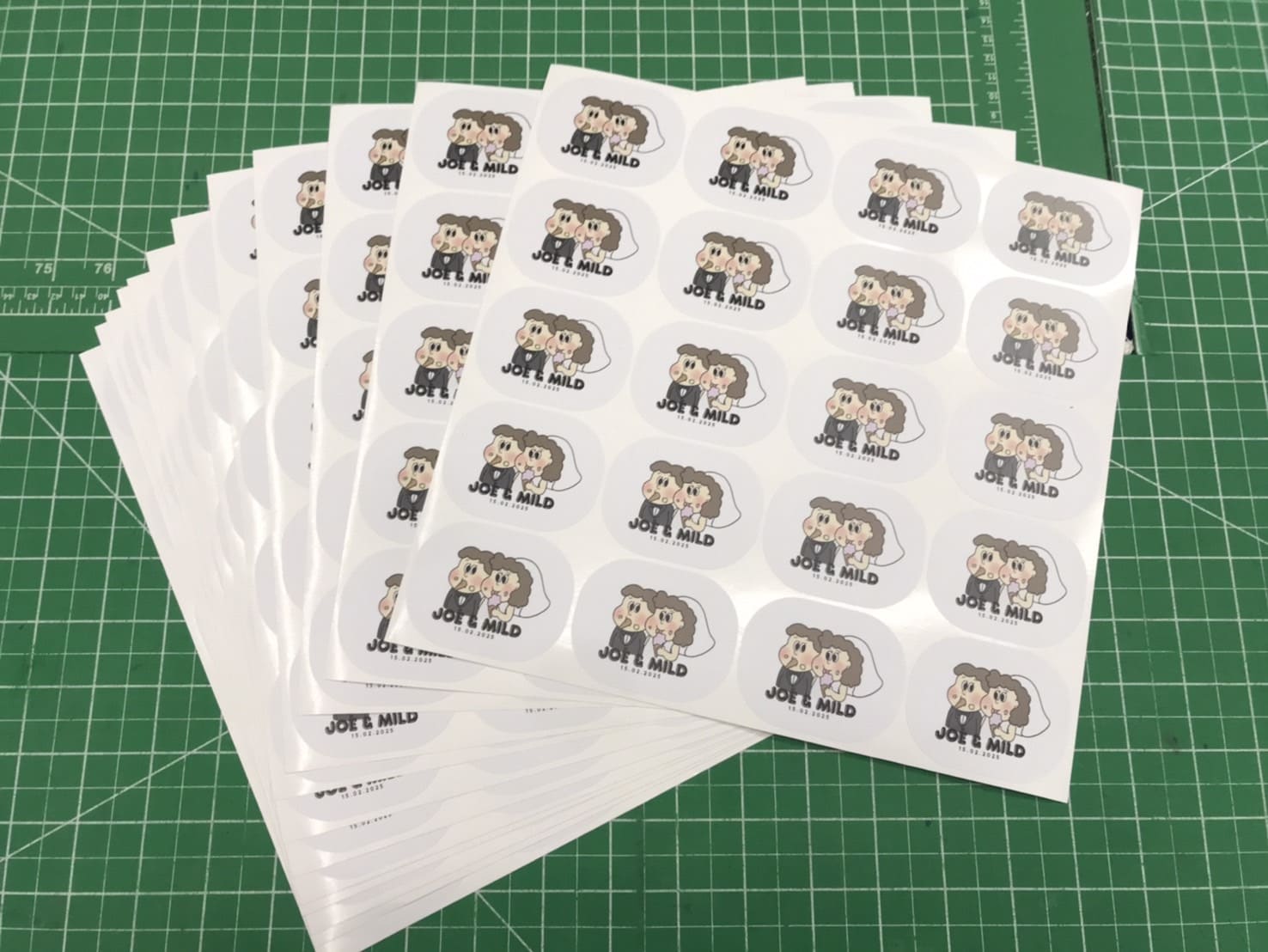 สติ๊กเกอร์ที่นำมาติดแก้วกาแฟแต่มีคุณสมบัติกันน้ำด้วยอยู่ในกลุ่มเดียวกับ สติกเกอร์หมูแดดเดียว ทั้งนี้เพราะสินค้าหมูแดดเดียว ต้องนำมาเก็บไว้ในตู้แช่ ดังนั้นเวลาผลิต สติกเกอร์ติดกล่องอาหาร ถึงต้องเลือกสติกเกอร์กันน้ำ แก้วกาแฟก็ไม่ต่างกัน เมื่อ stickerติดสินค้า บนแก้วกาแฟกันน้ำได้ โลโก้และภาพประกอบจะยังคงคมชัดเสมอจนสร้างความประทับใจให้กับลูกค้า